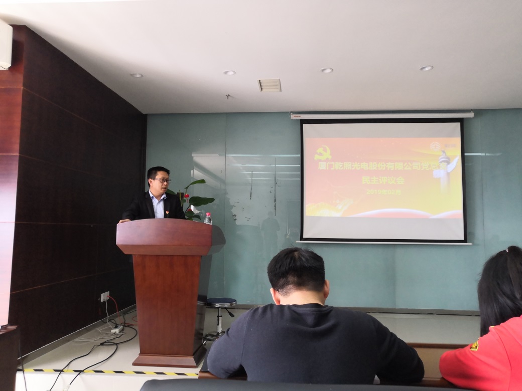 按照上級(jí)黨委的統(tǒng)一部署要求,2月27日,中共廈門乾照光電股份有限公司總支部委員會(huì)召開了民主評(píng)議黨員大會(huì),公司全體黨員參加,入黨積極分子列席。會(huì)議由黨總支書記、乾照光電副總裁牛興盛主持。