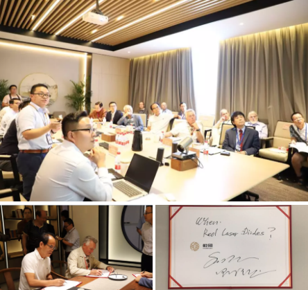 不謀全局者不足以謀一域。乾照光電積極構(gòu)筑制造業(yè)總部,大力布局化合物半導(dǎo)體領(lǐng)域前沿項(xiàng)目。在廈門、南昌、揚(yáng)州布局藍(lán)綠光LED外延片和芯片、砷化鎵新型太陽能電池、3D感測激光VCSEL芯片、Mini LED和MicroLED芯片規(guī)?;慨a(chǎn)等前沿產(chǎn)業(yè)項(xiàng)目。中村教授對乾照光電未來的規(guī)劃表示贊賞,他說,乾照光電已經(jīng)擁有了全色系的LED產(chǎn)品,這是很大的優(yōu)勢,相信公司一定會有很好的前景,同時(shí)也勉勵(lì)乾照光電年青的科研團(tuán)隊(duì)要“Stay hungry”(保持對知識的渴望)。中村教授離開公司前,寫下了 “When Red Laser Diodes?”的寄語,激勵(lì)乾照光電要始終走在產(chǎn)業(yè)的最前沿。
