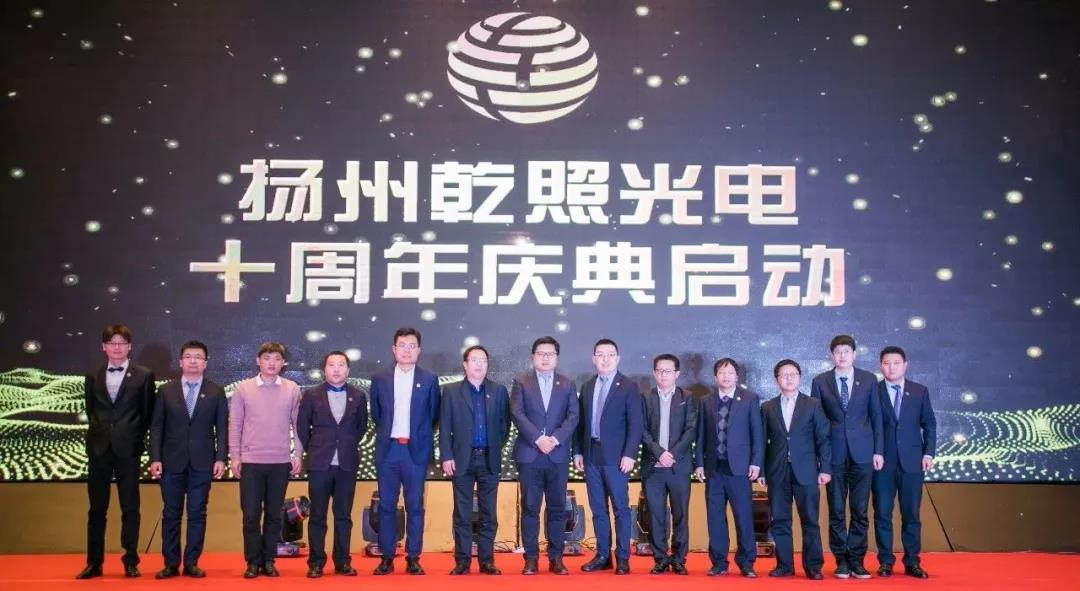 2019年1月25日,揚(yáng)州乾照光電“攜手乾行,從芯出發(fā)”10周年慶暨尾牙晚宴在揚(yáng)州香格里拉大酒店落下帷幕。乾照光電董事長(zhǎng)金章育,總裁蔡海防,公司全體高管以及揚(yáng)州乾照光電員工共1100余人參加。乾照光電創(chuàng)始人、原董事長(zhǎng)鄧電明,以及部分供應(yīng)商代表等嘉賓出席。