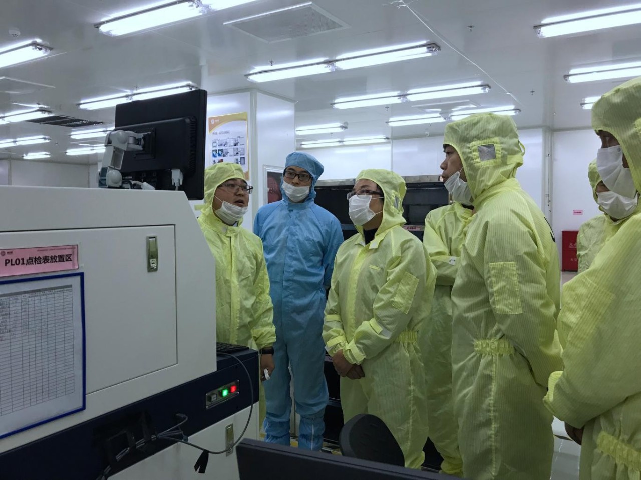 在展廳,李局長(zhǎng)認(rèn)真聽(tīng)取了公司企業(yè)文化、項(xiàng)目建設(shè)規(guī)劃、產(chǎn)品技術(shù)優(yōu)勢(shì)及應(yīng)用領(lǐng)域的介紹。隨后,調(diào)研組參觀了外延生產(chǎn)車間,并詳細(xì)了解了外延片的生產(chǎn)制作流程和質(zhì)檢工作程序。李局長(zhǎng)對(duì)江西乾照光電的迅速發(fā)展、現(xiàn)代化生產(chǎn)和智能化工序表示了高度的贊揚(yáng)。