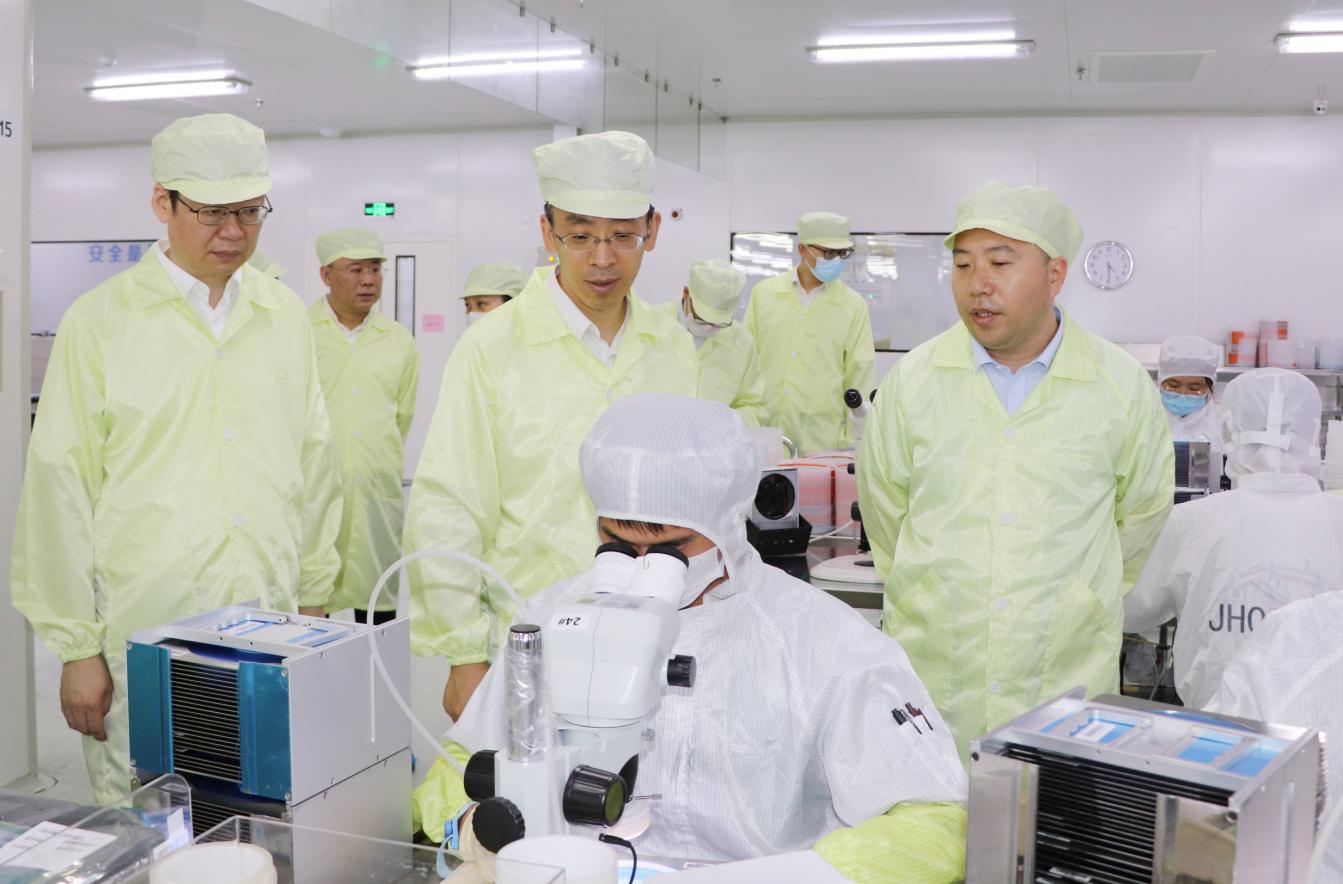 8月10日,江西省南昌市委常委、副市長王萬征帶隊,南昌市市政府副秘書長陳吉煒,新建區(qū)委常委、區(qū)政府黨組成員、新建經(jīng)開區(qū)黨工委第一書記秦潤明,新建經(jīng)開區(qū)黨工委書記萬紅玲等一行領(lǐng)導(dǎo)蒞臨江西乾照光電調(diào)研企業(yè)發(fā)展情況。江西乾照光電總經(jīng)理劉兆陪同接待。