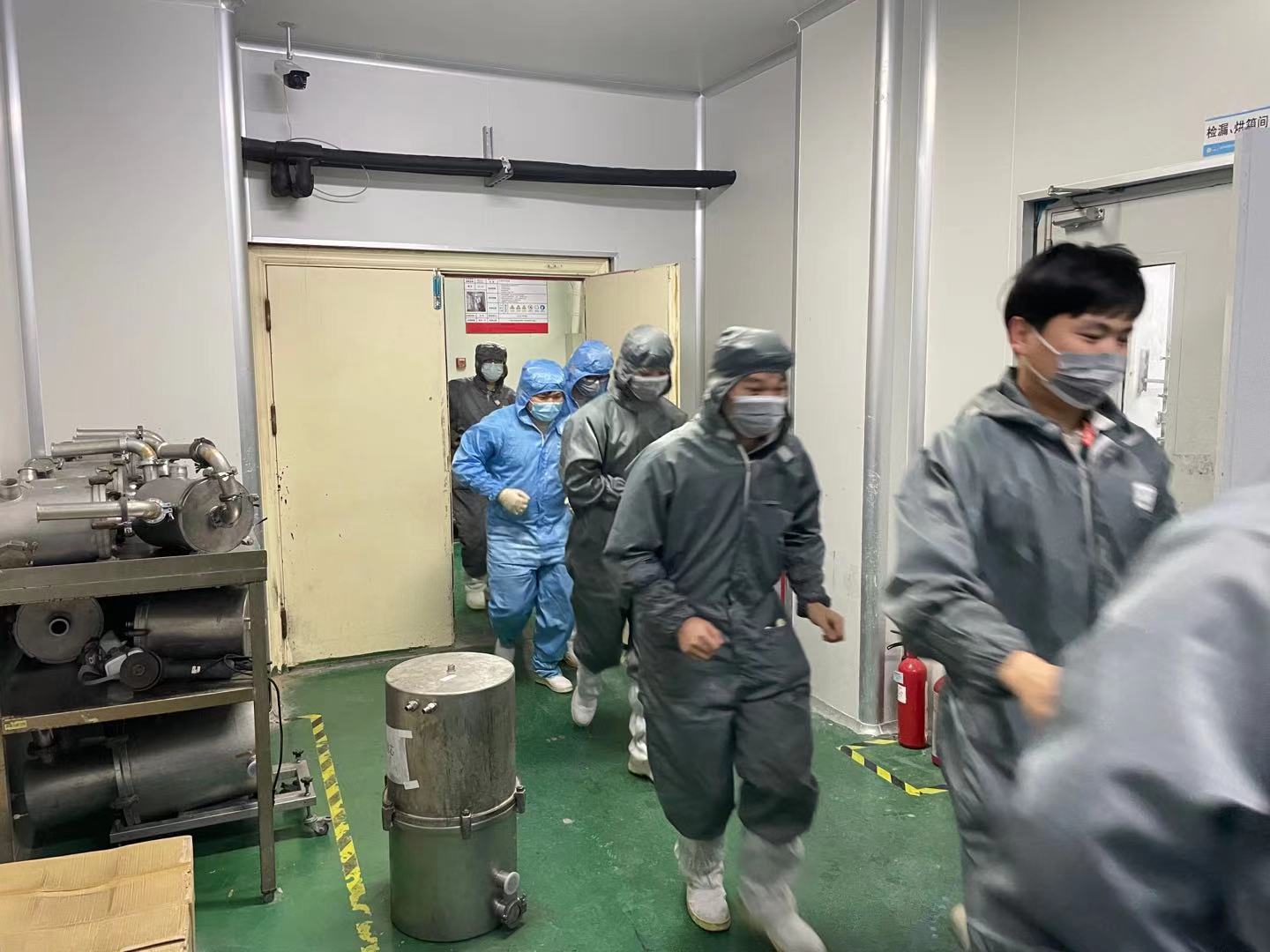上午8:35演習(xí)開始,外延車間塔燈聲光報警。車間人員快速有序撤離至緊急疏散集合點,應(yīng)急預(yù)案啟動,搶險組進入現(xiàn)場排查險情。