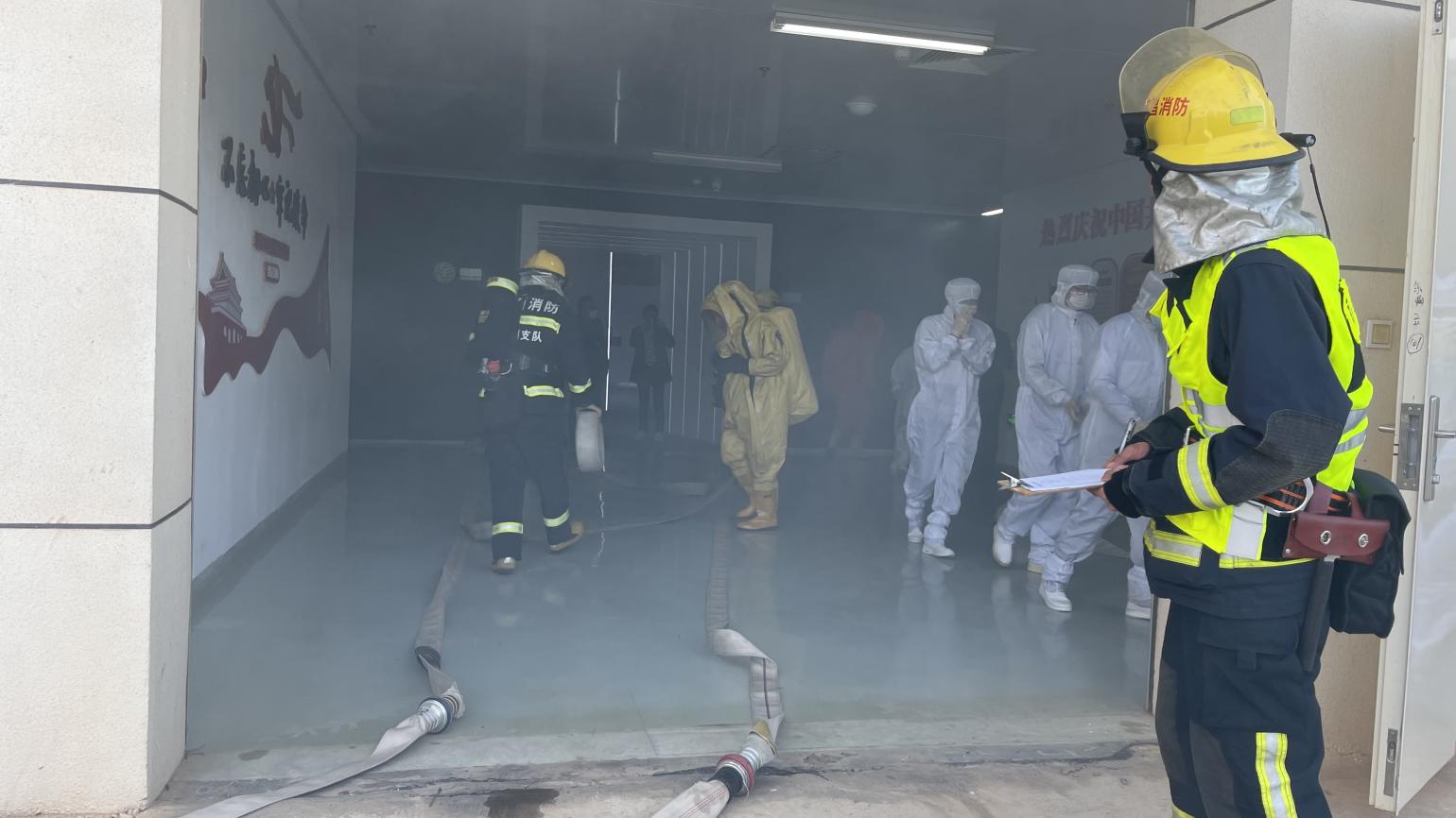一陣急促的警報聲拉開“下半年逃生疏散演練”活動的帷幕,隨后黃色煙霧迅速彌漫整個辦公區(qū)域。根據(jù)應(yīng)急預(yù)案逃生指令,消防廣播響起后各部門人員按照消防通道迅速撤離到室外安全集合點,并清點人數(shù),逐級向上匯報。全廠人員全部安全疏散完畢后,現(xiàn)場隨即進行實戰(zhàn)演練。