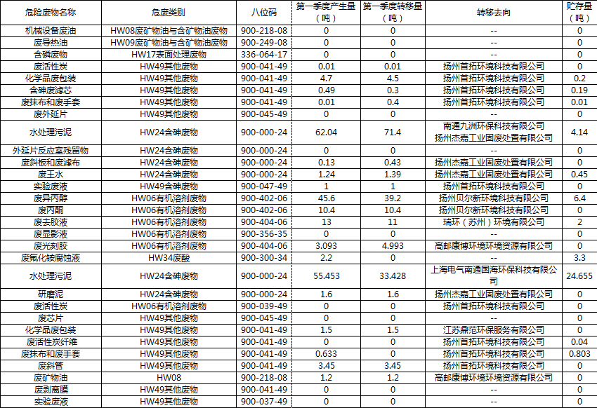 2022年第一季度危廢產(chǎn)生、轉移、貯存情況公示