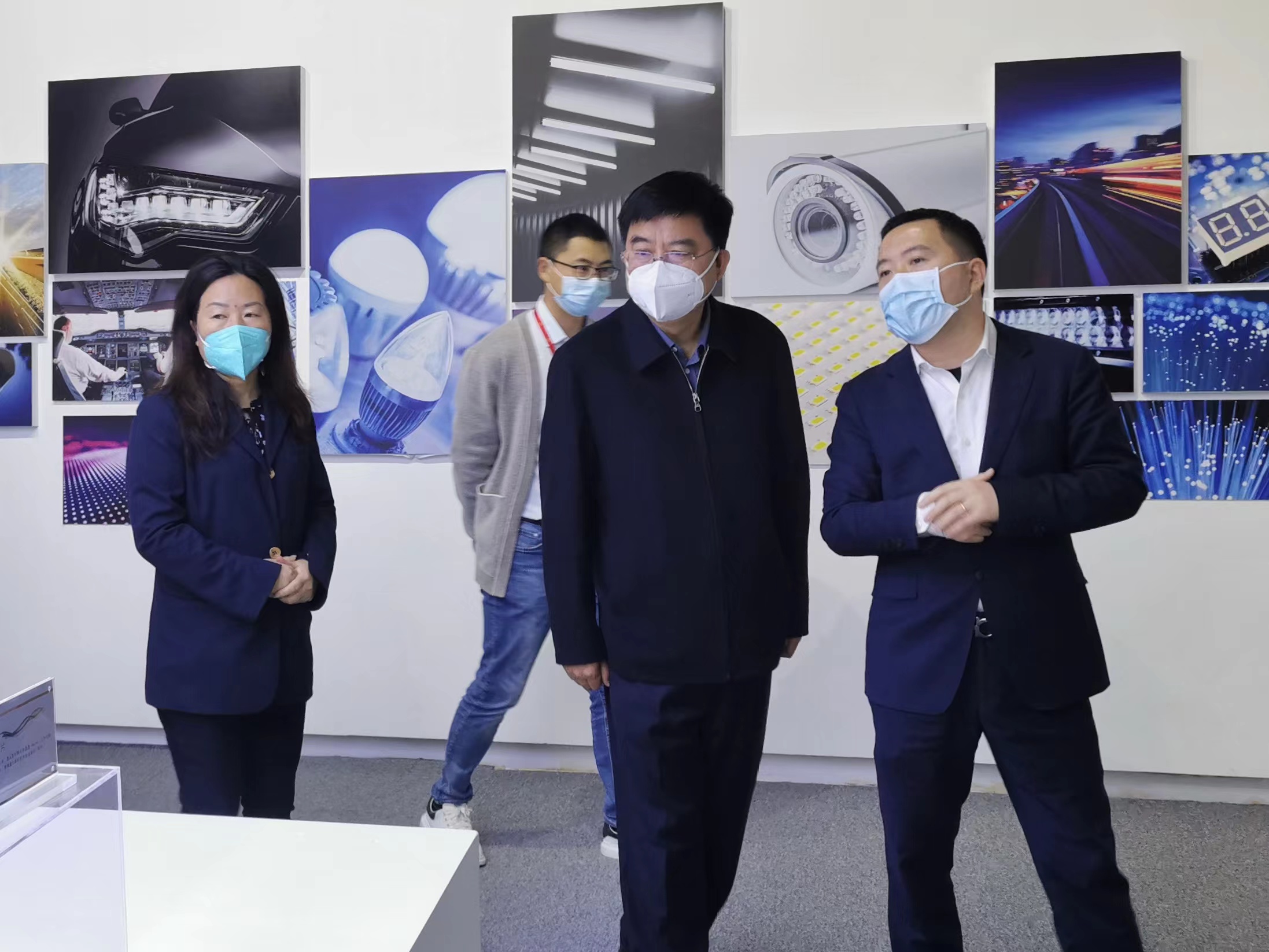在公司展廳,李書(shū)記一行聽(tīng)取了江西乾照光電總經(jīng)理劉兆關(guān)于企業(yè)生產(chǎn)經(jīng)營(yíng)現(xiàn)狀、產(chǎn)品應(yīng)用領(lǐng)域及未來(lái)發(fā)展規(guī)劃的匯報(bào),并詳細(xì)了解了公司目前的生產(chǎn)情況和公司疫情防控措施的落實(shí)情況。他表示,在疫情最嚴(yán)峻的形勢(shì)下,江西乾照迅速響應(yīng)政府防疫政策,配合政府做好防疫“一企一策”,全面實(shí)施封控管理措施,鼓勵(lì)員工駐廠辦公,廠區(qū)內(nèi)嚴(yán)格實(shí)施“不進(jìn)不出”,正常運(yùn)營(yíng)生產(chǎn),四月份取得了新的成績(jī),給予了充分肯定。他指出,隨著疫情防控形勢(shì)好轉(zhuǎn),企業(yè)要在嚴(yán)防疫情的基礎(chǔ)上,堅(jiān)守安全生產(chǎn)底線(xiàn),嚴(yán)格落實(shí)疫情防控措施,確保安全生產(chǎn)有序推行。他強(qiáng)調(diào),企業(yè)要堅(jiān)持生產(chǎn)、防疫兩手抓兩不誤,加大生產(chǎn)力度,推進(jìn)企業(yè)平穩(wěn)快速發(fā)展,大力引進(jìn)上下游優(yōu)勢(shì)企業(yè),進(jìn)一步補(bǔ)鏈延鏈強(qiáng)鏈。