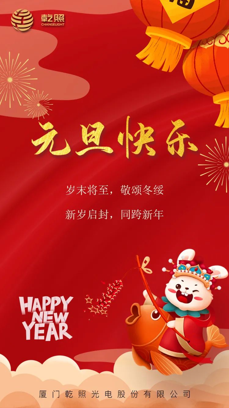 旭日東升,新年肇始,祝您新年快樂、闔家歡樂、身體健康。