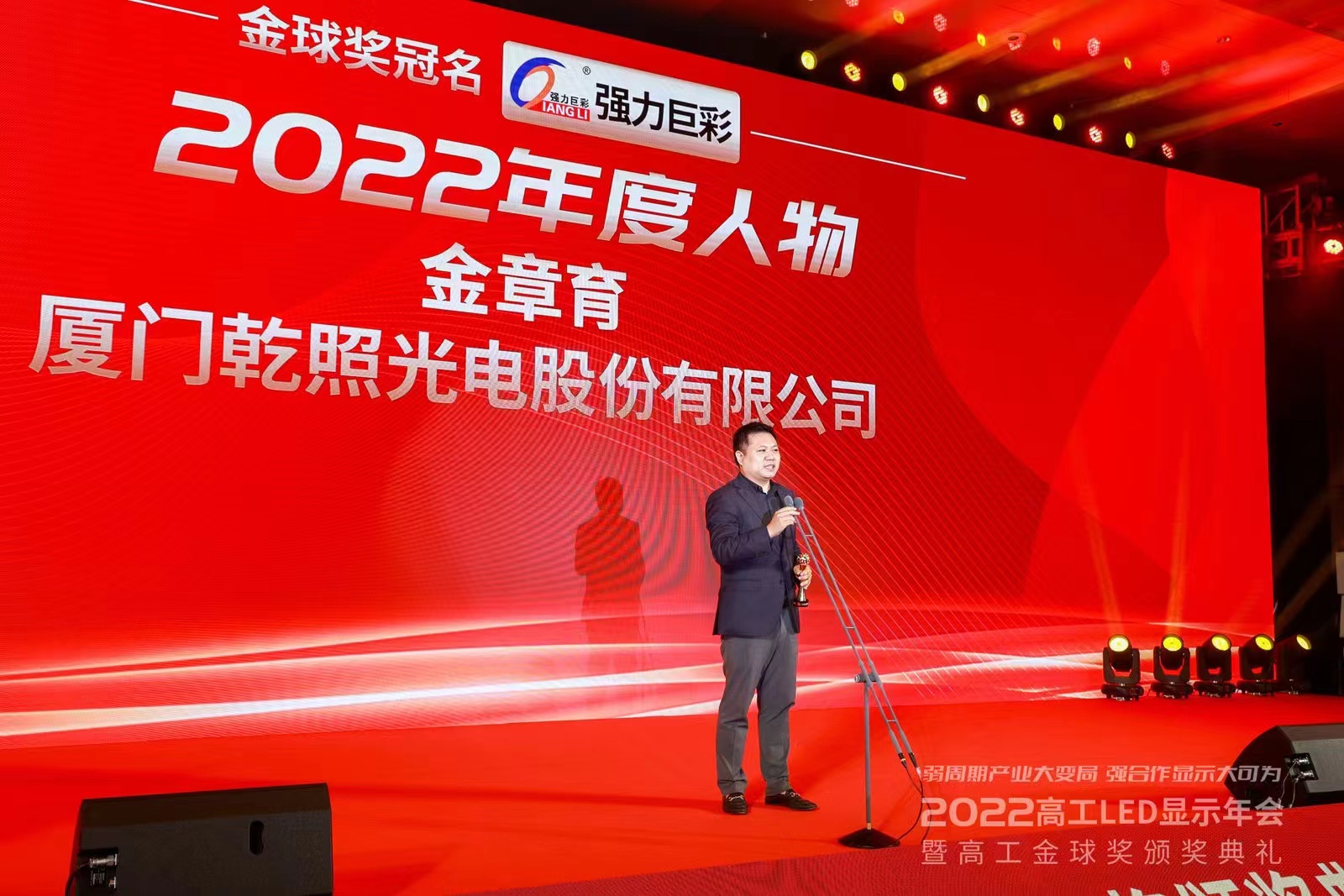 11月24日—25日,由高工LED、高工產(chǎn)研主辦,標(biāo)譜半導(dǎo)體協(xié)辦的主題為“弱周期產(chǎn)業(yè)大變局,強合作顯示大可為”的2022高工LED顯示年會暨2022高工金球獎頒獎典禮在深圳盛大舉行,來自LED產(chǎn)業(yè)鏈上中下游企業(yè)的數(shù)百位嘉賓歡聚一堂,共襄盛典。乾照光電董事長金章育榮獲“2022年度人物”、乾照光電榮獲“2022年度創(chuàng)新技術(shù)”獎項。