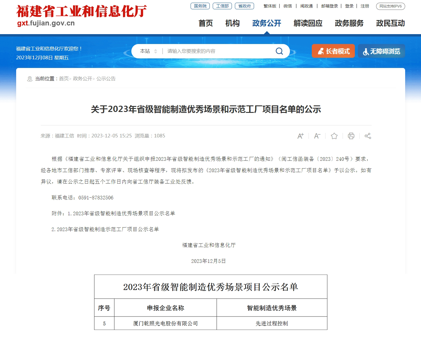 近期,乾照光電成功入選工業(yè)和信息化部公布的“2023年度智能制造示范工廠揭榜單位和優(yōu)秀場(chǎng)景名單”及福建省工業(yè)和信息化廳公布的“2023年省級(jí)智能制造優(yōu)秀場(chǎng)景和示范工廠項(xiàng)目公示名單”。