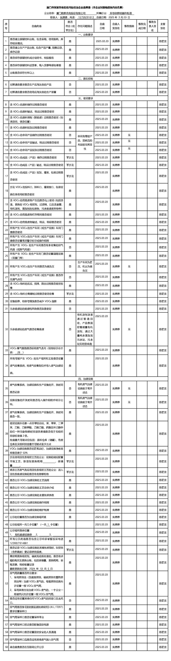 揮發(fā)性有機(jī)物污染防治企業(yè)自查表