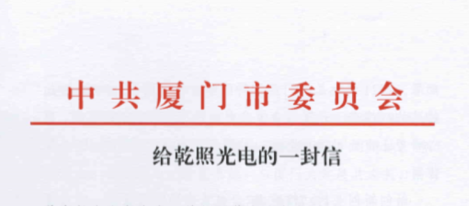 中共廈門市委給乾照光電的一封信