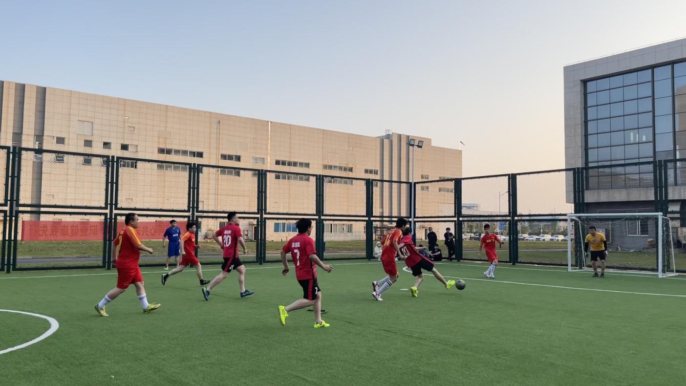 接下來的綠茵賽場,雙方隊員頑強拼搏,進攻、防守,球員們腳下功夫了得,不論是搶球,傳踢,氣勢凌厲。場外觀眾也激情洋溢,縱情地為隊員們加油,現(xiàn)場氣氛十分熱烈。在經(jīng)過幾輪積分循環(huán)賽,最終綜合隊、外延隊、芯片隊和廠務(wù)隊挺進決賽。