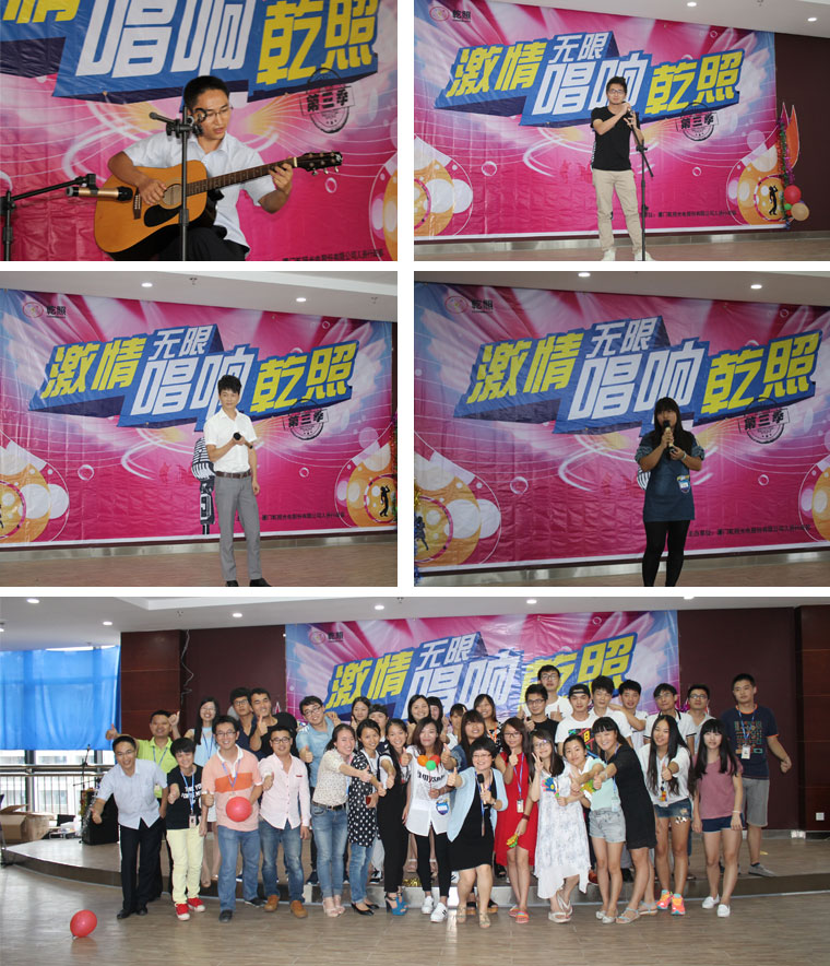 本季歌唱比賽旨在為公司尾牙活動(dòng)選拔才藝類節(jié)目,發(fā)揮發(fā)掘大家文藝方面的才能,同時(shí)通過對(duì)企業(yè)文化的發(fā)揚(yáng)達(dá)到促進(jìn)對(duì)員工的影響,開拓創(chuàng)新思維。各位參賽選手準(zhǔn)備充分,發(fā)揮最優(yōu)水準(zhǔn)。各位大眾評(píng)委通場(chǎng)與歌手互動(dòng),比賽現(xiàn)場(chǎng)始終洋溢著隆重?zé)崃业臍夥铡R皇子赏庋又圃觳吭O(shè)備組洪輝柏的獨(dú)唱《你是我的眼》,拉開了比賽的序幕。整場(chǎng)比賽歌聲悠揚(yáng),現(xiàn)場(chǎng)氣氛火爆,洋溢著濃郁的節(jié)日氣氛。兩首不同風(fēng)格的《海闊天空》在外延部戴金途和采購部陳明郅的演繹下,把比賽推向高潮?,F(xiàn)場(chǎng)吸引了各個(gè)部門領(lǐng)導(dǎo)、員工前來觀戰(zhàn),并不時(shí)贏得陣陣掌聲和歡呼聲。在經(jīng)過緊張激烈的評(píng)選后,最終有11名選手進(jìn)入復(fù)賽。在8月27號(hào)下午,決賽終于開始了。選手們雖然心情更加緊張,但一上臺(tái)就盡情歌唱,臺(tái)下的評(píng)委也給出了公正公平的分?jǐn)?shù)。本次比賽也秉承著“友誼第一,比賽第二!”的宗旨,有的選手雖然沒獲獎(jiǎng),但他們非常享受這個(gè)舞臺(tái)。最終,芯片部的陳健文演唱的一首《小情歌》虜獲了所有評(píng)委的心,獲得冠軍,外延部的戴金途取得亞軍,研發(fā)部的姜偉取得季軍的好成績(jī)。